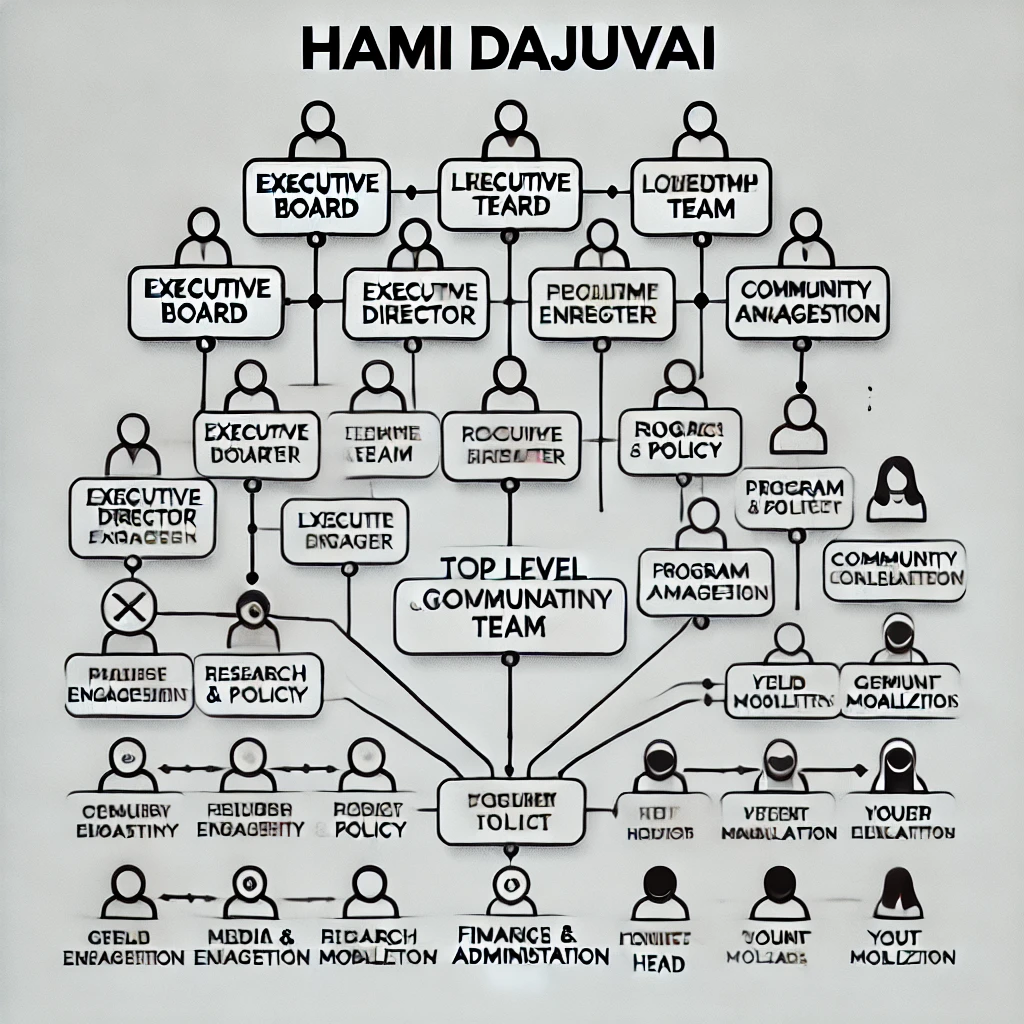 At Hami DajuVai (HDV), we believe that impactful social change begins with a strong, dynamic, and inclusive structure. Our team operates in a way that fosters collaboration, accountability, and intersectional leadership, ensuring that every individual, from leadership to grassroots mobilizers, plays a vital role in advancing our mission.HDV follows a participatory leadership approach, meaning decision-making is not limited to the top levels but involves voices from every level of the organization. This ensures that our strategies are informed by the lived experiences of the people we serve.Our structure is not rigidly hierarchical but fluid and adaptive, allowing teams to work collaboratively across different programs and initiatives. This flexibility enables us to respond quickly to emerging gender justice issues and remain community-focused in our approach.